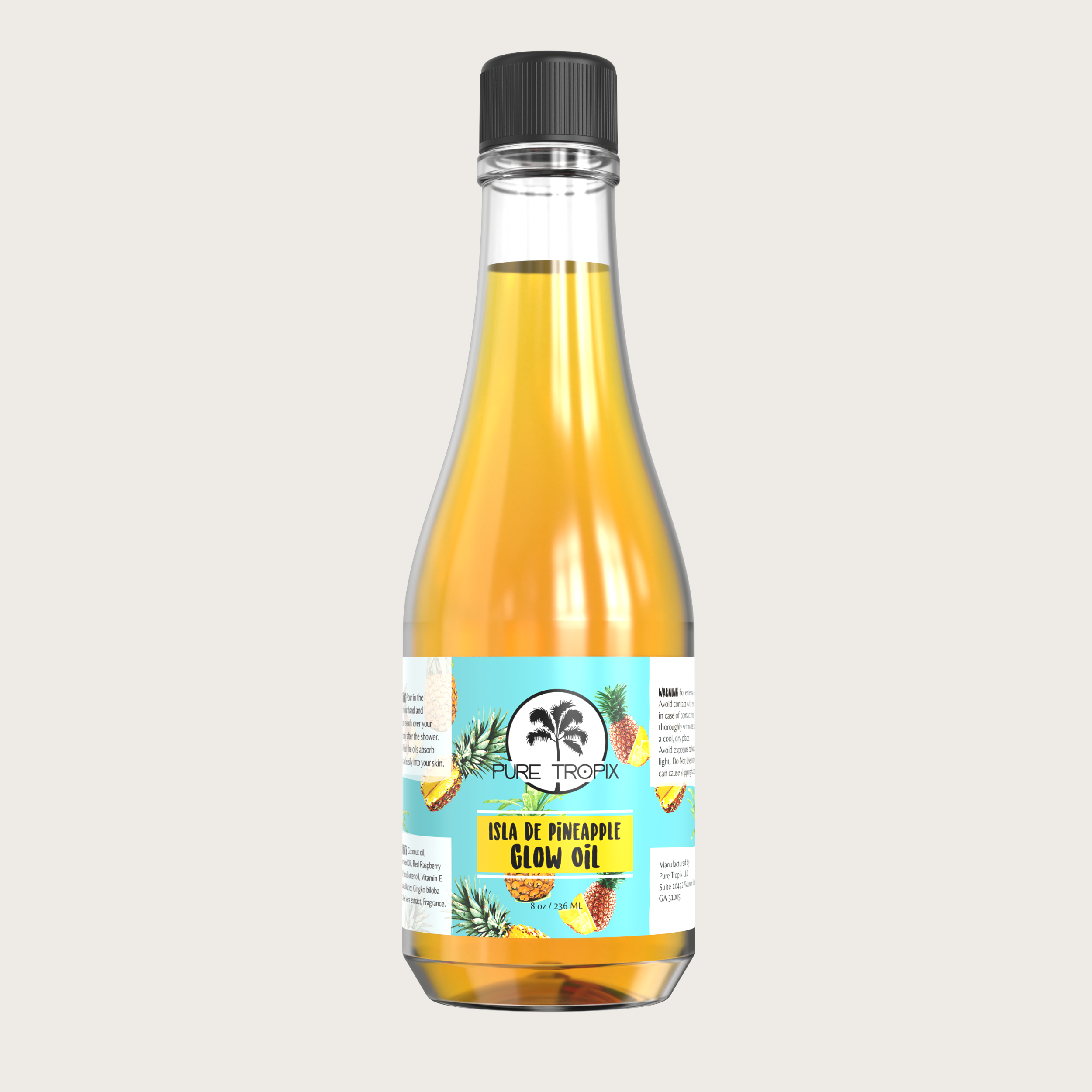 Treat your skin to the ultimate indulgence with the Isla De Pineapple Glow Oil, a luxurious blend designed to hydrate, nourish, and leave your skin with a radiant glow. With its lightweight formula, this body and massage oil absorbs quickly, delivering deep moisture without any greasy residue. Infused with the luscious aroma of freshly cut ripe pineapple, it’s a sensorial escape to the tropics with every use.