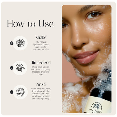 - Rinse & Refresh: Wash away impurities, then follow with the Green Ginger Toner for ultimate hydration and pore-tightening.